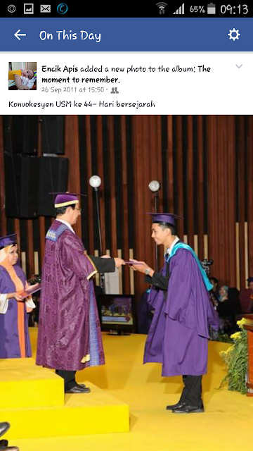 Tiba2 keluar notification "3 years ago today" event, mungkin sebab update latest version fb awal pagi tadi kot. Surprisingly me, 24 Septemeber 2011 was my convocation day and its 4 years ago!